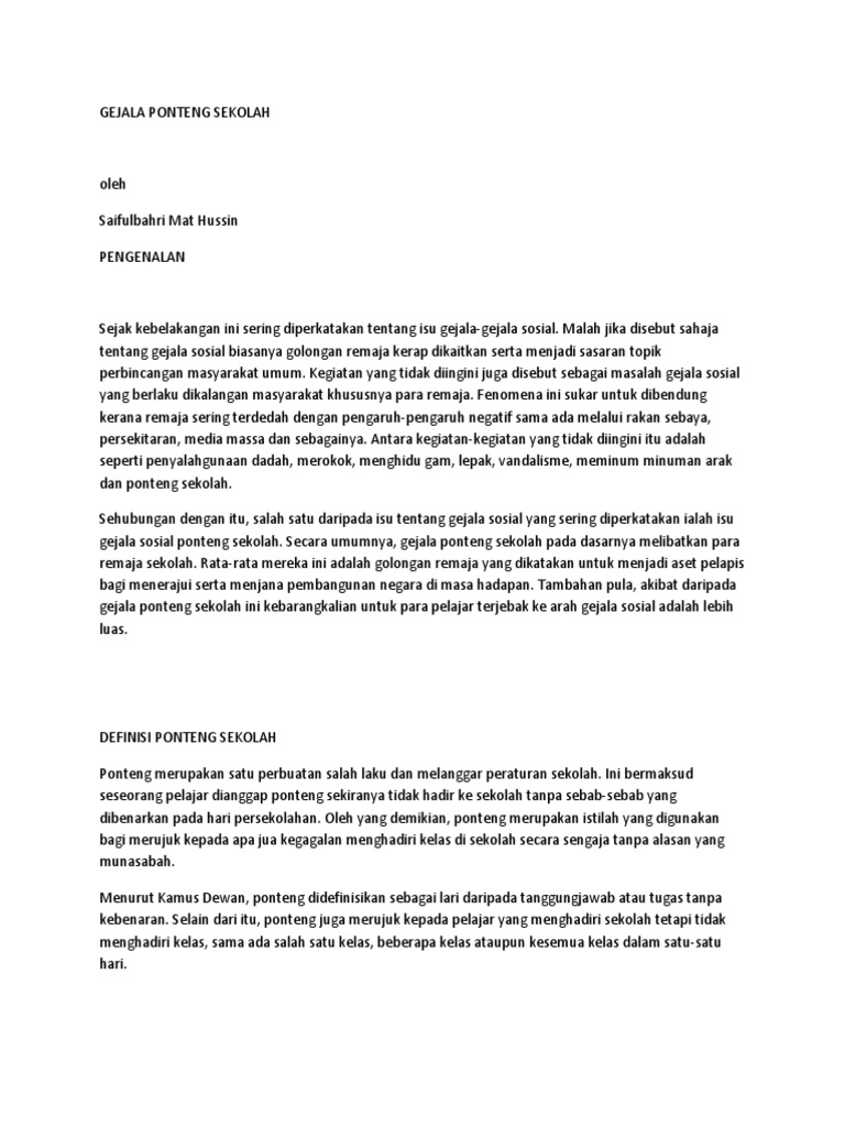 Truancy, cuting school, played truant. Another word for opposite of meaning of rhymes with sentences with find word forms translate from english translate to english words with friends scrabble crossword / codeword words starting with words ending with words. 0 ratings0% found this document useful (0 votes). Mengikut laporan disiplin pelajar sekolah menengah tahun 2005 yang dikeluarkan oleh pejabat pelajaran daerah tanah. Savesave ponteng sekolah for later.